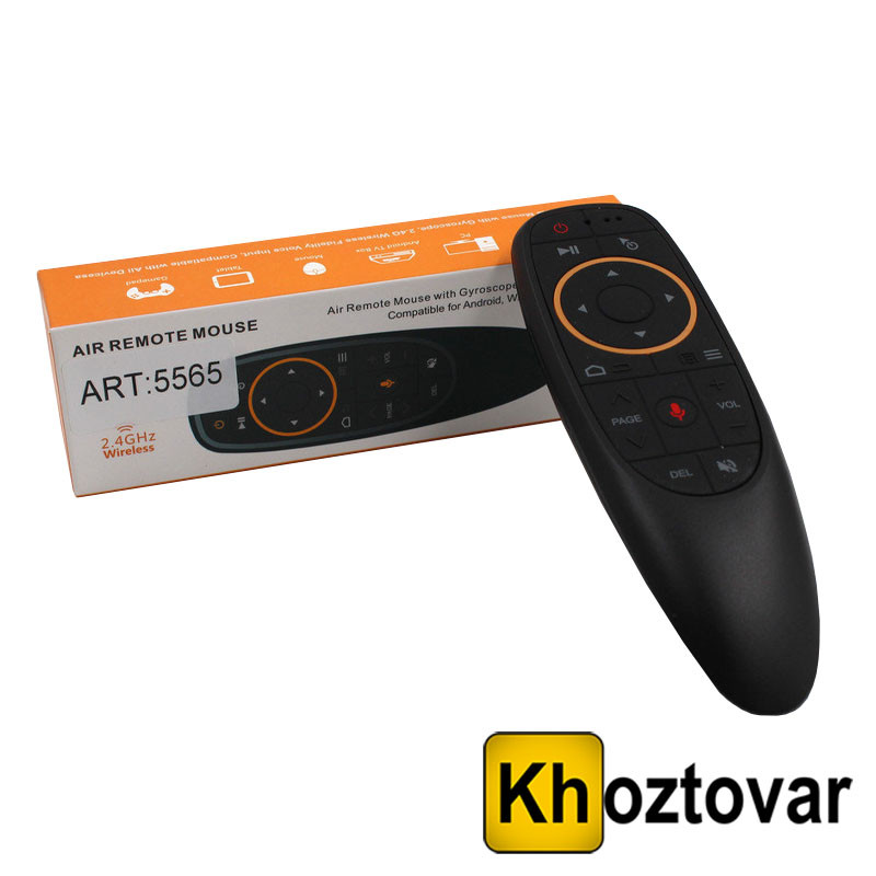 Air Mouse G20 — це професійна бездротова миша, бездротовий зв'язок між Air Mouse G20 і пристроєм має частоту 2,4 ГГц, з радіусом дії 10 м. Air Mouse G20 не вимагає жодних додаткових налаштувань. Після того як USB-приймач вставляється в пристрій — миша налаштовується автоматично. Пульт має також невелику вагу та зручно лягає в руку. Пульт можна використовувати з персональними комп'ютерами, Smart TV, телевізійними Smart TV приставками, Android TV Box та іншими пристроями. У комплекті з повітряною мишею постачається USB-приймач 2.0, за допомогою якого вона з'єднується з пристроями керування. З аеро мишею G20 вам більше не знадобиться тверда рівна поверхня для керування приставкою або телевізором. Кнопки гучності, повернення, домашньої сторінки, кроку назад та інших істотно спростять користування технікою. Пульт програмується. Наприклад, Ви можете запрограмувати пульт смарт-приставки. Голосове керування пультом дасть змогу насолодитися керуванням за допомогою спеціальних застосунків, серед яких Google Assistant.